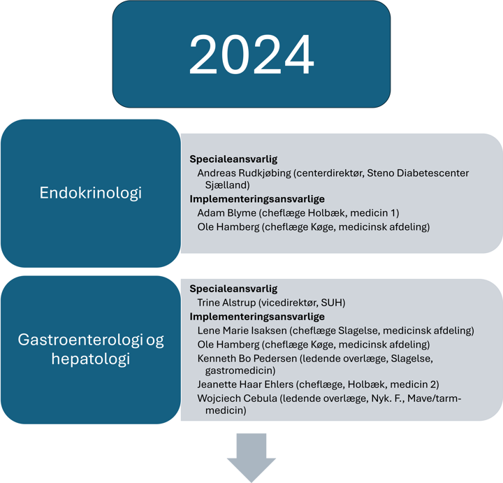 Nedenfor ses de specialer der indgår i udviklingsprogrammet. Specialerne onboardes over en periode på 2 år og i den skitserede rækkefølge.