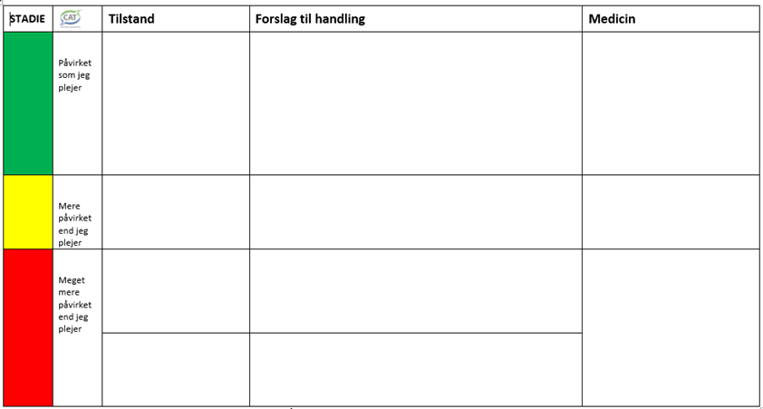 - Referenceværdi for CAT og vægt (borgerens nuværende vægt) indtastes på planen