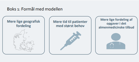 Med sundhedsreformen og den nye model til fordeling af læger er der sat en ny retning for almen praksis. Det skal især tilgodese de sygeste og svageste patienter og betyder, at der på sigt skal være flere praktiserende læger i de områder, hvor mange borgere har et stort behov for hjælp.